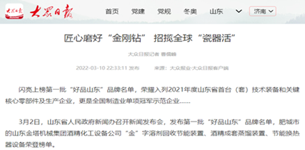 歷經多年的拼搏創(chuàng)新,金塔已經成為規(guī)?;?、成套化、技術化及節(jié)能化的酒精生產及廢液處理裝備專業(yè)制造商,是《酒精蒸餾塔》 《糠醛水解鍋》《糠醛蒸餾塔》等國家行業(yè)標準的制定者。以“金”字為商標的酒精生產及其節(jié)能環(huán)保設備是國內客戶尤其是知名大型酒業(yè)公司信賴的品牌,與中國酒業(yè)的龍頭企業(yè) 五糧液集團三次合作,深得好評和信賴,與天冠集團、阜豐集團、吉良集團等大型燃料乙醇巨頭攜手,推動了燃料乙醇技術裝備的進步,向國內28個省市區(qū)近2000家客戶提供了產品和技術服務,建立了深厚的合作基礎,并出口東南亞、東歐、非洲、南美等多個國家。